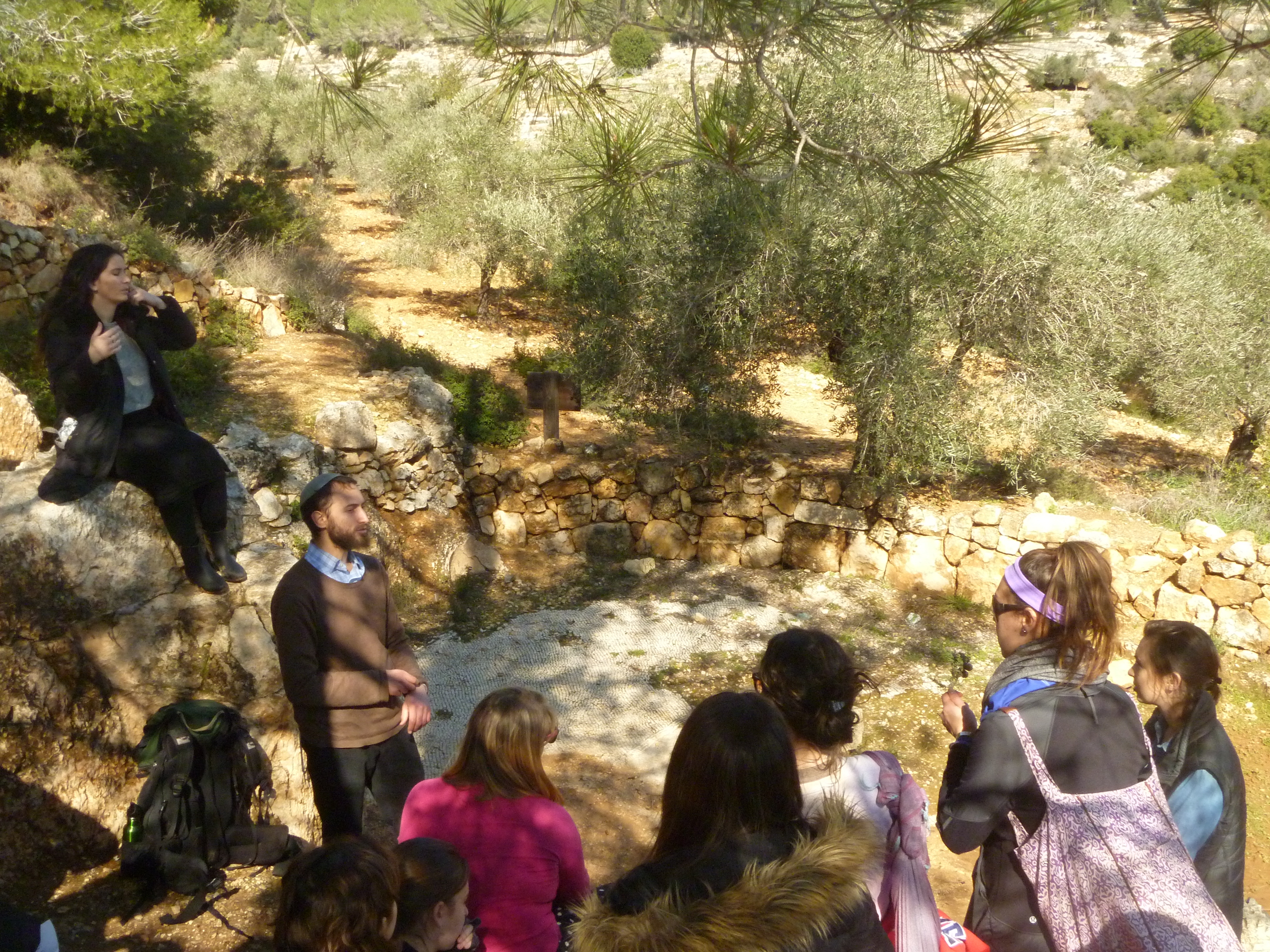 Ein Sataf, 20 minutes outside of Jerusalem, is an ideal location for this program. The site contains an orchard of fruit trees indigenous to Israel, an ancient wine press, and organic garden plots cultivated using traditional techniques. Participants can also enter the hewn-out spring, crawl through the passage way and exit at the other side.